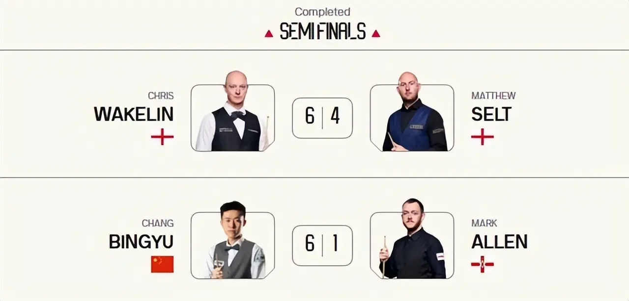 下半场开始后,常冰玉再轰单杆68分、57分,连胜两局以5-1遥遥领先拿到多个赛点。马克艾伦的状态没有起色,在第七局接连失误,常冰玉抓住机会完成终结,最终6-1拿下这场半决赛,以资格赛黑马的身份,连胜斯佳辉、凯伦威尔逊、塞尔比、马克艾伦四位现Top16,回归职业的第一年就杀入苏格兰赛决赛!
